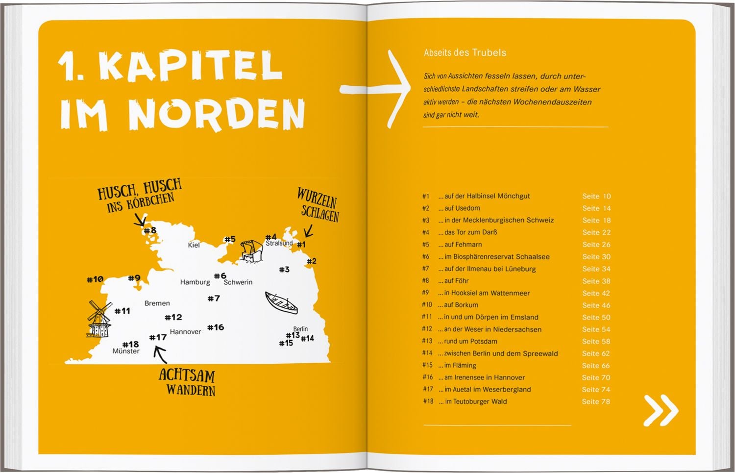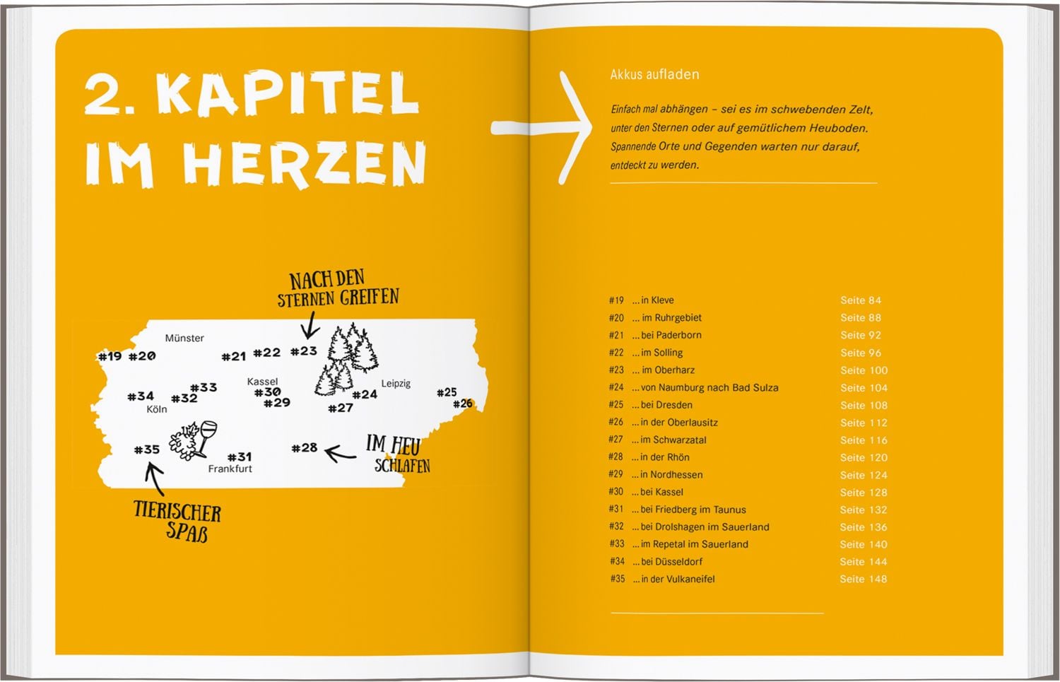 EINFACH ABSCHALTEN UND SO RICHTIG die Seele baumeln lassen! 52 Eskapaden in ganz Deutschland für alle, die beim Wandern, Radeln und Paddeln in der Natur entschleunigen wollen. Sterne zählen, über dem Nebelmeer wandern, sich auf eine Reise nach innen begeben – mit diesen Ideen ist es ganz einfach, das große Glück im Kleinen zu finden und aktiv neue Kraft zu tanken. In diesem Buch warten unwiderstehliche Ausflüge im Grünen plus charmante Übernachtungstipps , die zum Verweilen einladen. So wird aus jeder Tour eine rundum gelungene Mini-Auszeit mit maximalem Wohlfühlfaktor. 52 Touren in ganz Deutschland: im Norden, im Herzen, im Süden Kleine Alltagsfluchten & Digital Detox: vielseitige Ideen zur Entschleunigung Perfekt für Wochenend- und Kurztrips: inkl. Übernachtungstipps #KopfAusHerzAn #GlückImKleinen #Raus&Bleiben
