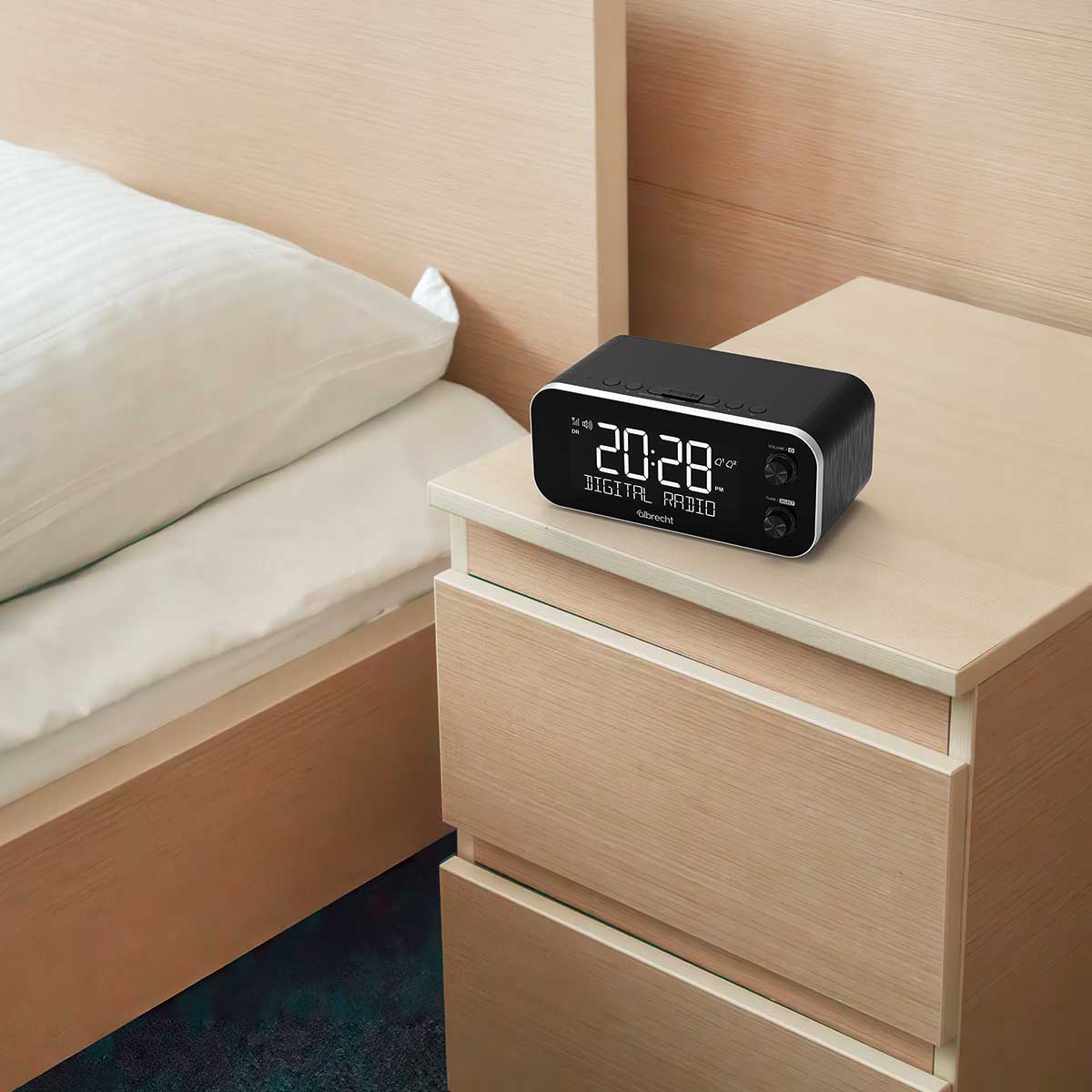 Ganz gleich wie Sie in den Tag starten wollen – mit dem neuen Radiowecker DR 455 gelingt das Aufstehen immer! Ob Nachrichten, Morning Show oder Musik ... mit dem Radiowecker steht eine riesige Musikvielfalt zur Verfügung, um gut gelaunt den neuen Tag zu begrüßen. Dabei können Sie zwischen rauschfreiem DAB+ oder traditionellem UKW-Radioempfang wählen.