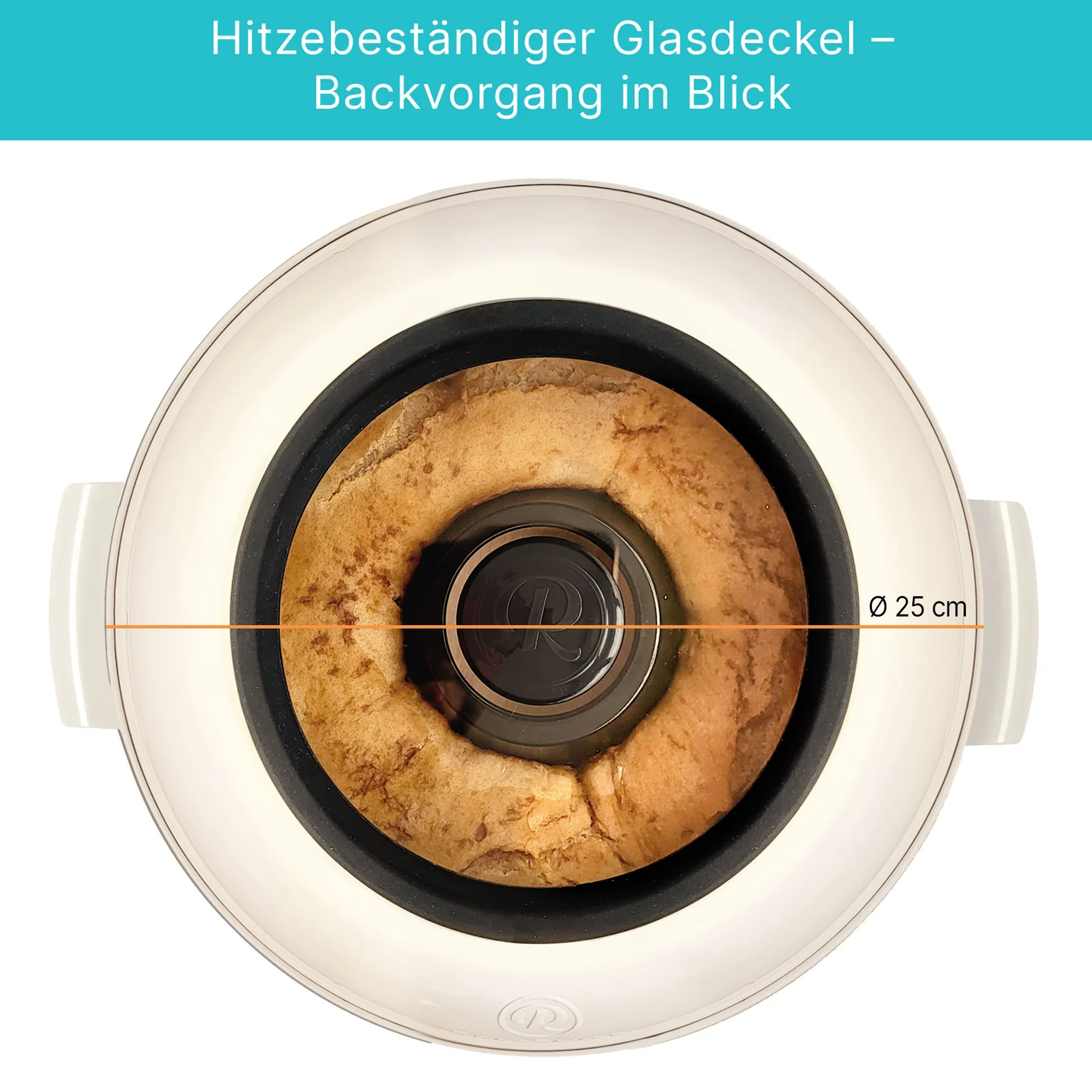 - Glasdeckel: hitzebeständig, für perfekte Sicht auf den Backvorgang