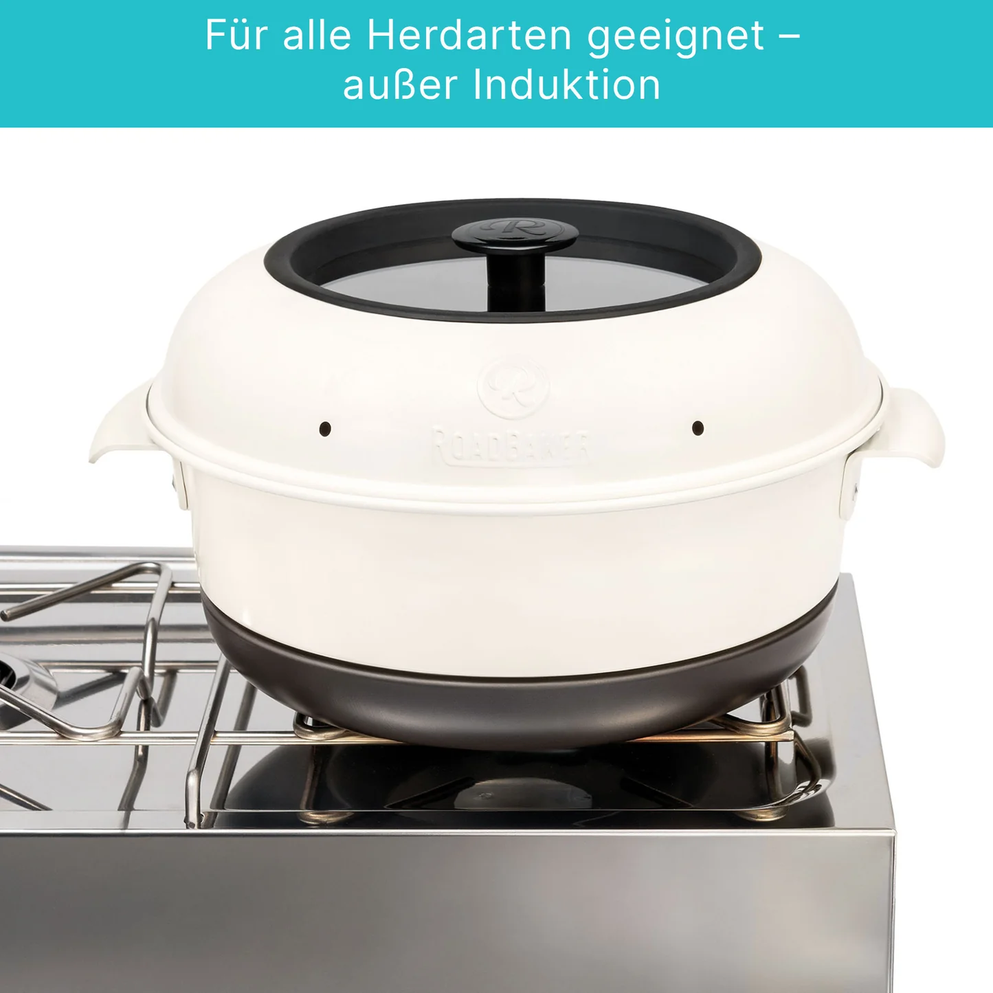 Mit dem RoadBaker beginnt die neue Ära des mobilen Backens. Dank des hitzebeständigen Glasdeckels kannst du den Backvorgang beobachten, ohne den Deckel zu öffnen – für volle Kontrolle, gleichmäßige Ergebnisse und keinen Energieverlust.