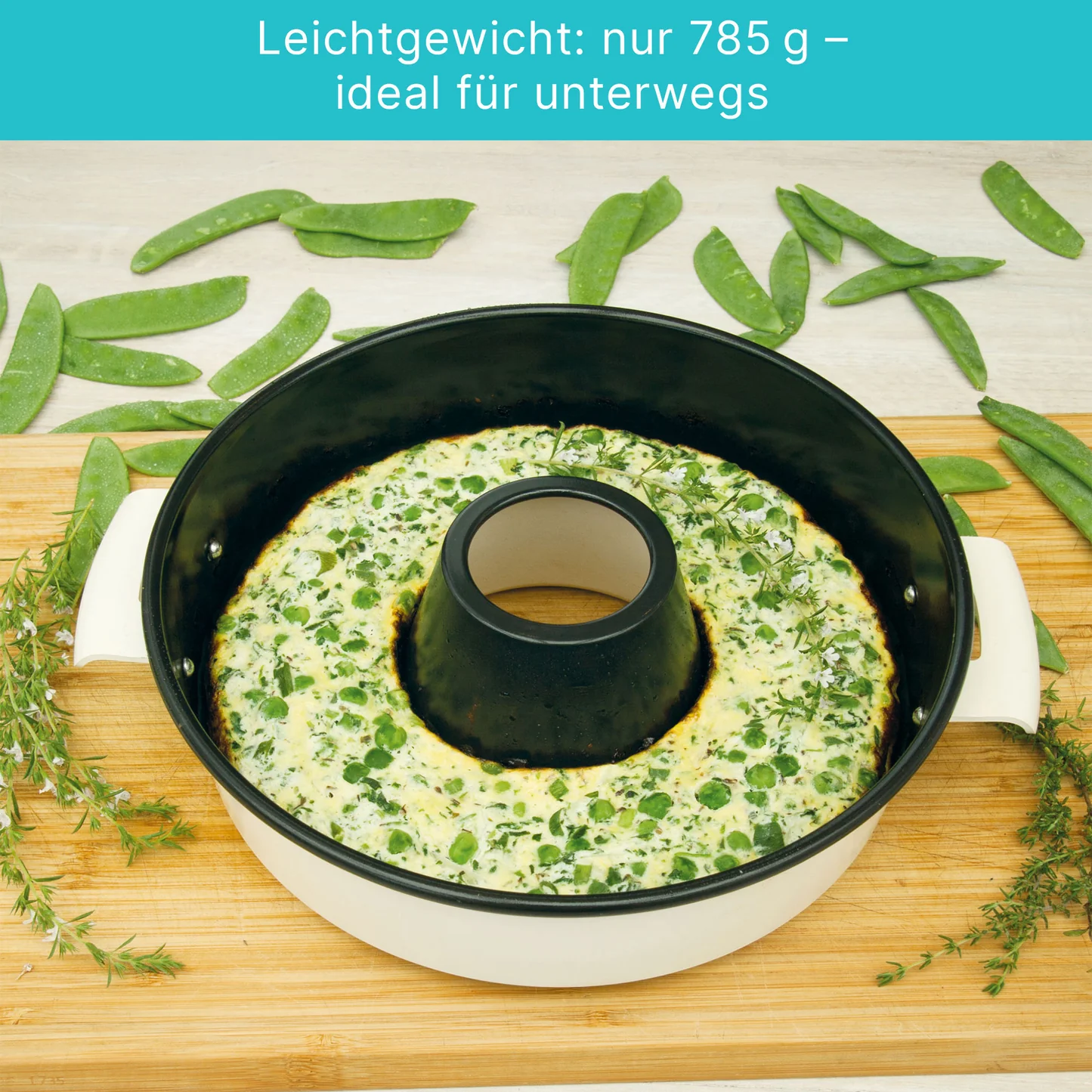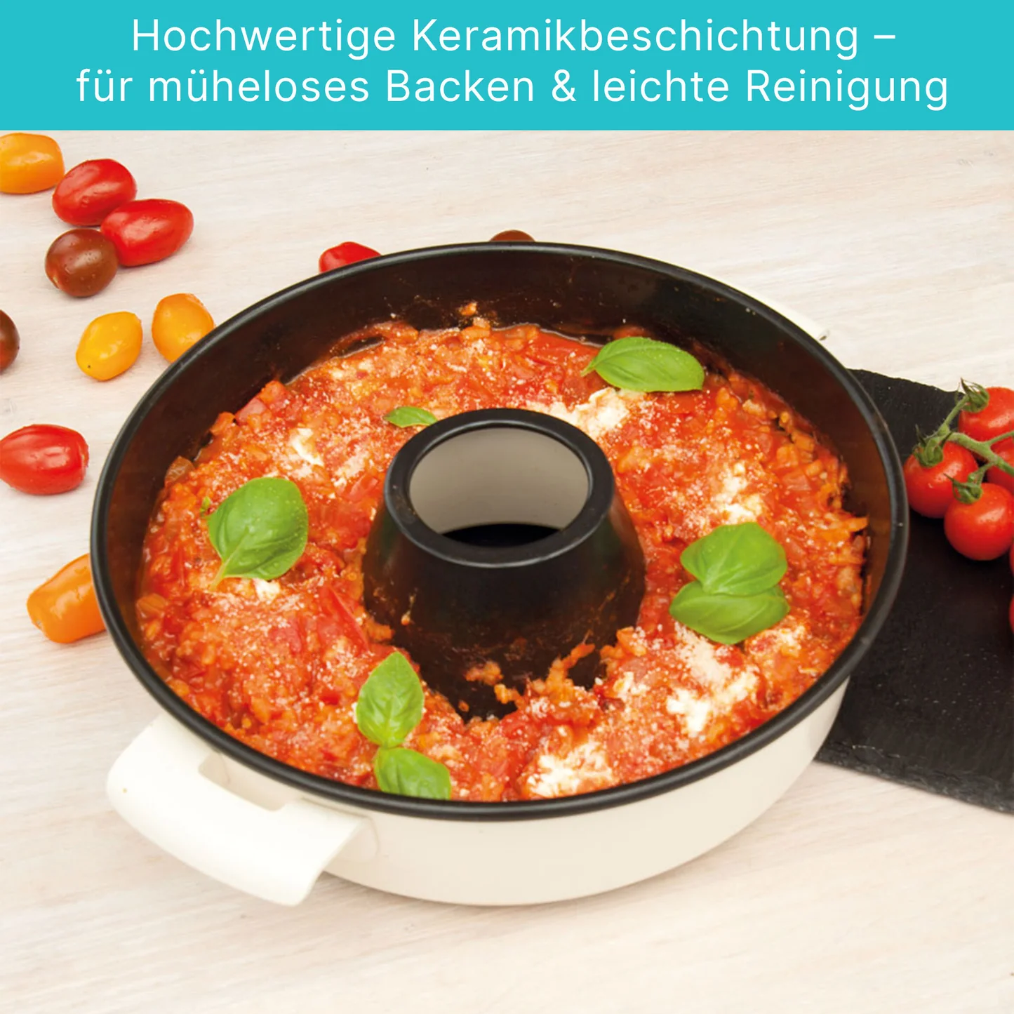 - Material: PFAS-freie, keramisch beschichtete Backform mit ergonomischen Griffen